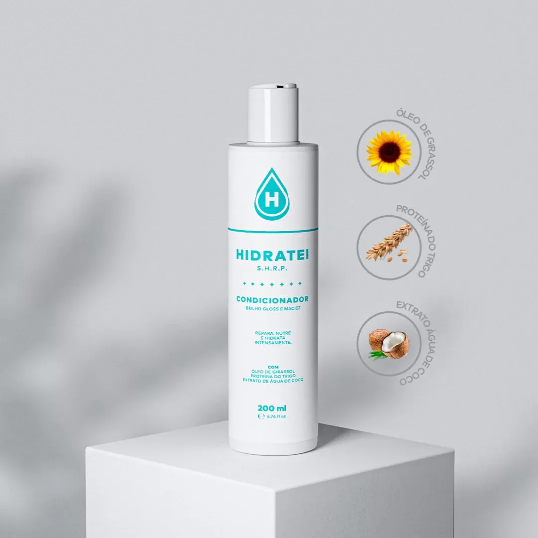 O Condicionador Hidratei SHRP 200ml foi especialmente desenvolvido para proporcionar hidratação intensa, brilho gloss e controle do frizz. Ideal para todos os tipos de cabelo, sua fórmula combina extrato de água de coco e proteína do trigo, nutrientes que fornecem maciez, nutrição e vitalidade aos fios. Esse produto transforma o cabelo em poucos minutos, deixando-o macio, alinhado e com um brilho duradouro.