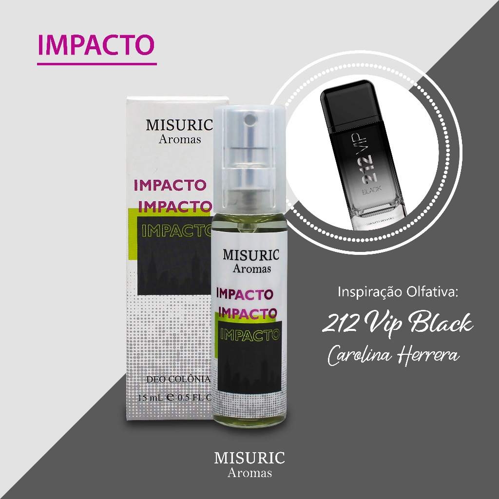 O Misuric Perfume Masculino Impacto 15ml é uma deo colônia de bolso desenvolvida para homens que valorizam elegância, intensidade e sofisticação. Com uma fragrância oriental amadeirada, é ideal para ocasiões especiais e ambientes noturnos. Inspirado no icônico 212 vip black, combina notas de bergamota, limão, flor de oliveira, madeira de guaiaco e fava tonka, criando um aroma envolvente, elegante e marcante. A embalagem prática de 15ml é perfeita para levar na bolsa ou mochila, garantindo estilo e personalidade em qualquer lugar. Indicado para todos os tipos de pele, especialmente para quem busca um perfume masculino com presença e refinamento
