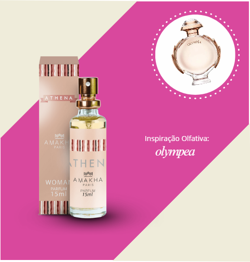 O Perfume Amakha Paris Athena 15ml é uma fragrância feminina sofisticada e intensa, inspirada na deusa grega da sabedoria, inteligência e justiça. Com notas florais e ambaradas, transmite poder, feminilidade e profundidade. Ideal para mulheres determinadas, elegantes e que desejam se destacar com personalidade. A embalagem spray de 15ml é prática e perfeita para levar na bolsa. Produto vegano, com alta concentração de essência e excelente fixação.
