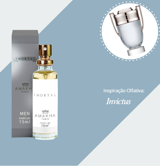 O Perfume Amakha Paris Imortal 15ml é uma fragrância masculina da família olfativa amadeirada aquática, desenvolvida para homens que enfrentam desafios com coragem e estilo. Inspirado no Invictus de Paco Rabanne, traz uma combinação vibrante de notas oceânicas, toranja e mandarina, com corpo de folha de louro e jasmim, e fundo marcante de âmbar cinzento, madeira guaiac, musgo de carvalho e patchouli. Ideal para uso diário, prática esportiva ou momentos de lazer. A embalagem spray de 15ml é prática e perfeita para levar no bolso.