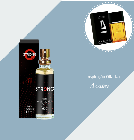 O Perfume Masculino Strong 15ml da Amakha Paris é uma deo colônia de alta concentração, ideal para homens que desejam transmitir confiança e elegância. Com uma fragrância da família olfativa aromático fougère, combina notas frescas e amadeiradas que evocam sofisticação e poder. Sua embalagem compacta de 15ml é perfeita para levar no bolso ou na bolsa, garantindo praticidade no dia a dia. A textura leve e a fixação prolongada tornam este perfume uma escolha certeira para ocasiões formais ou momentos especiais. Inspirado em fragrâncias internacionais como Azzaro, é indicado para homens modernos e exigentes