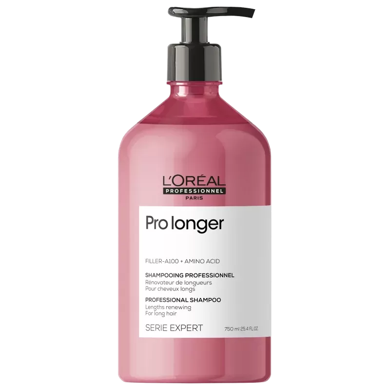 O Shampoo L’Oréal Professionnel Serie Expert Pro Longer 750ml foi desenvolvido para cabelos longos que sofrem com pontas afinadas e fragilizadas. Sua fórmula contém a exclusiva tecnologia Filler-A100 e Aminoácidos, que penetram na fibra capilar para espessar e fortalecer os fios, reduzindo visivelmente as pontas duplas.