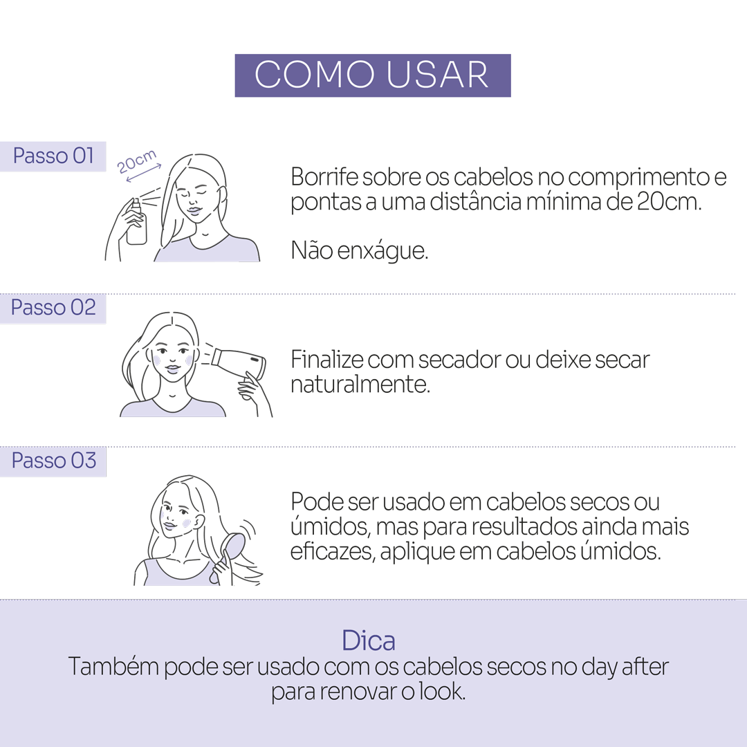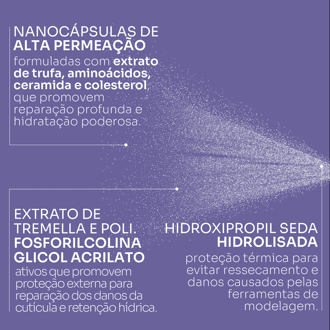 Este leave-in serve para restaurar a saúde dos fios danificados, proporcionando hidratação profunda, controle de frizz e proteção contra agressões externas como calor de secador e poluição. É indicado para quem deseja cabelos mais macios, brilhantes e com aparência saudável.